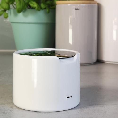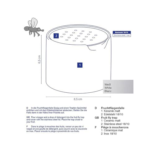 Lieferumfang: 1 Kela Fruchtfliegenfalle, 11900, weiß, Keramikbehälter, 18/10 Edelstahldeckel 6,5 cm, 8,5 Ø, Fino